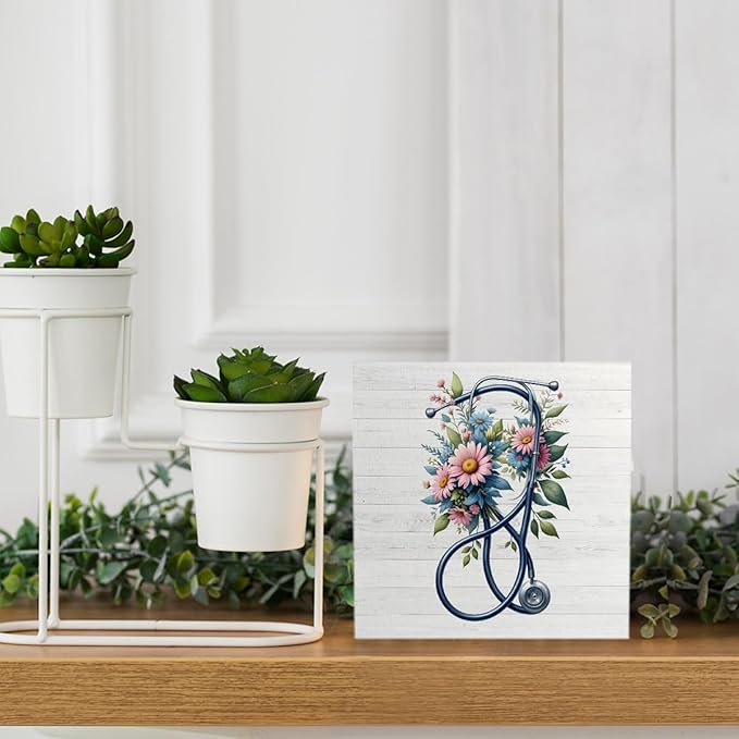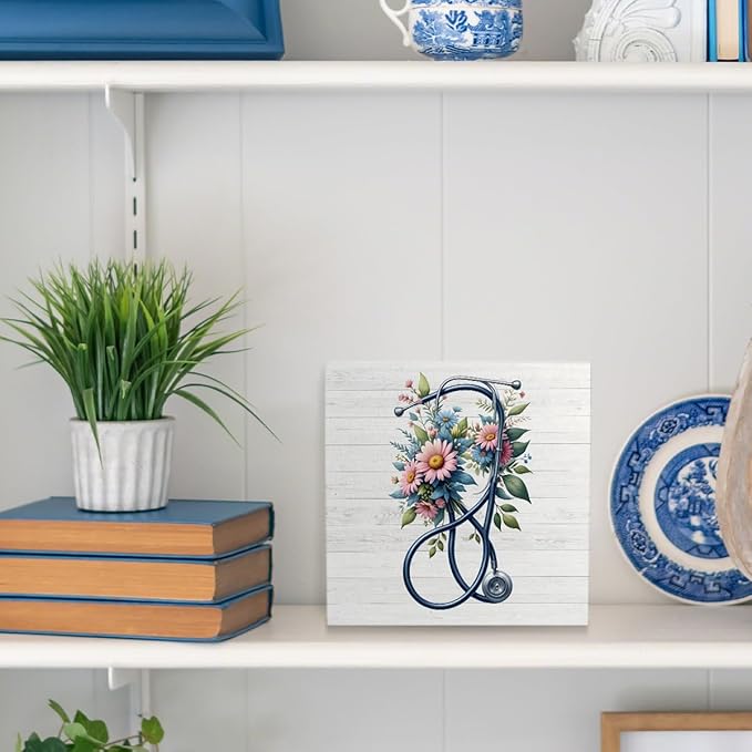 Nurse Office Decor - Appreciation Gifts for Women, Practitioner, Registered Nurse, RN - Floral Stethoscope Signs for Office