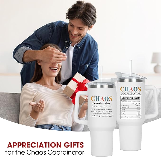 TEEZWONDER Christmas Thank You Gifts for Women - Chaos Coordinator Insulated 40 oz Tumbler with Handle - Funny Birthday Employee Appreciation Gifts for Women Coworkers Boss Colleagues Teachers Nurses