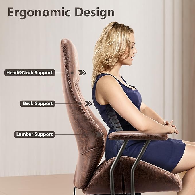Mid Century Modren Office Chair - High Back Swivel Executive Chair with Lumbar Support,Ergonomic Computer Desk Chair with Wheels,Faux Lether Suede Task Chair,350lbs(Dark Brown, High Back)