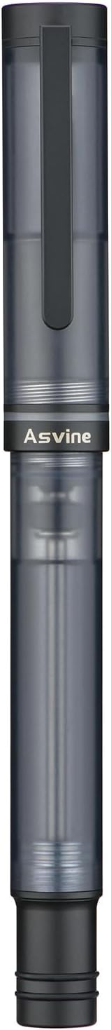 Asvine V200 Titanium Fountain Pen Vacuum Filling, Matte Black Fine Point Transparent Acrylic Smooth Writing Pen Case Set