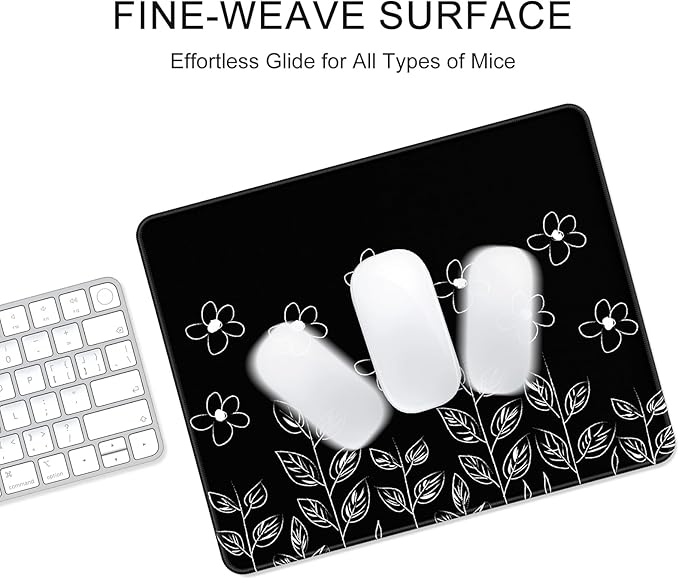 Auhoahsil Mouse Pad, 12 x 10 in Flower Theme Computer Mouse Pad for Desk, Premium-Textured Non-Slip Rubber Stitched Edges Waterproof Square Mouse Mat for Gaming Work Wireless Mice, Black