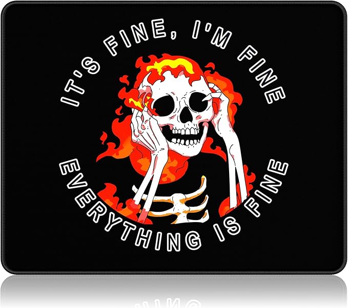 Auhoahsil Mouse Pad, 12 x 10 in Cute Skull Theme Computer Mouse Pad for Desk, Premium-Textured Non-Slip Rubber Stitched Edges Waterproof Square Mouse Mat for Gaming Work Wireless Mice, I am fine