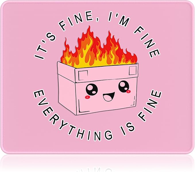 Auhoahsil Mouse Pad, 12 x 10 in Dumpster on Fire Computer Mouse Pad for Desk, Premium-Textured Non-Slip Rubber Stitched Edges Waterproof Square Mouse Mat for Gaming Work Wireless Mice, It's Fine