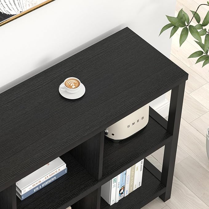- Modern Horizontal Bookshelf: With black wood grain finish and black metal frames, this 6 cube storage organizer seamlessly blends modern and industrial styles. The fusion of decor and functionality makes this industrial bookshelf a versatile addition