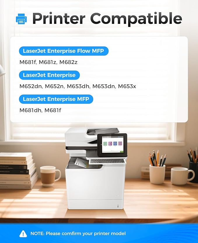 - Compatible Printers: Compatible with HP Color LaserJet Enterprise Flow MFP M681f M681z M682z; Color LaserJet Enterprise M652dn M652n M653dh M653dn M653x; Color LaserJet Enterprise MFP M681dh M681f Printer.