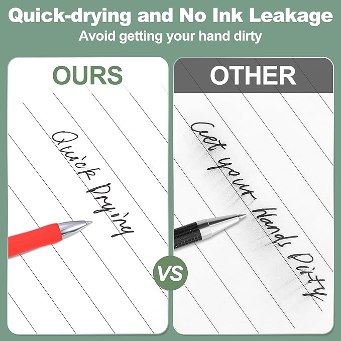- [Smooth Writing and Quick Drying] Excellent-quality ink achieves even ink flow with no ink leakage or interruption, allowing you to write smoothly. The large ink capacity ensures the long service life of the pen. Quick-drying ink prevents you from getting your hands and clothes dirty.