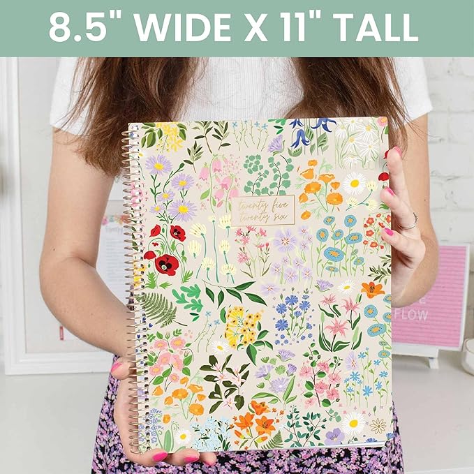 bloom daily planners 2025-2026 (8.5" x 11") Academic Year Day Planner (July 2025 - July 2026) - Weekly & Monthly Dated Agenda Organizer with Stickers & Tabs - Garden Party, Beige