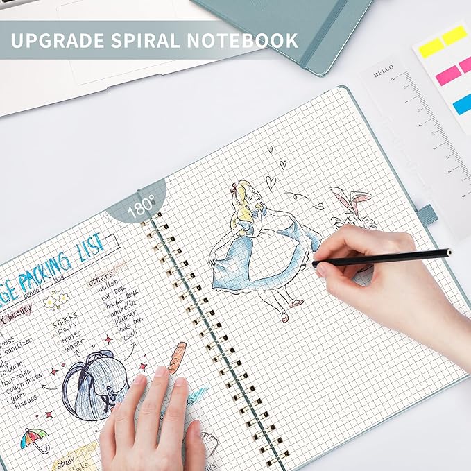 - HARDCOVER LEATHER JOURNAL: This spiral notebook features a durable, waterproof vegan leather cover that protects your notes from damage. The double-wire binding allows for easy folding and 180° lays flat for convenient writing