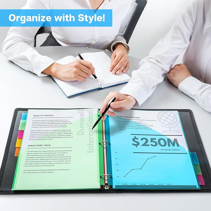 - Stay Organized! Color coded tabbed dividers for easy access. Includes tab inserts. 3-hole divider pocket stores letter-size 8.5x11" paper, Double pocket 8-tabbed binder dividers, folder separators.