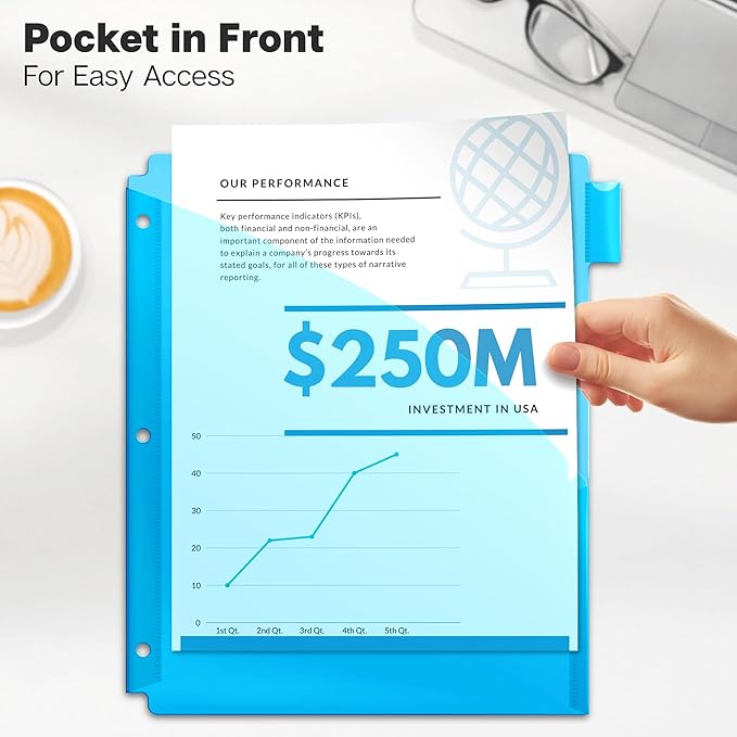 - Stay Organized: Brightly colored dividers with pockets, Includes tab inserts. 3-hole divider pocket can store letter-size 8.5x11" paper, Single pocket 8-tabbed binder dividers, folder separators.