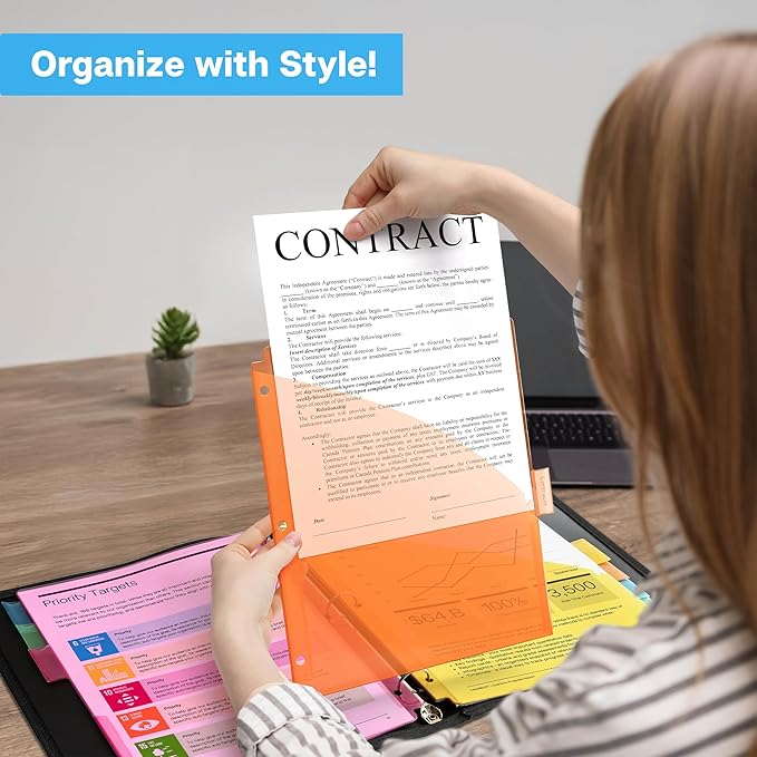 - Stay Organized! Color coded tabbed dividers for easy access. Includes tab inserts. 3-hole divider pocket stores letter-size 8.5x11" paper, Single pocket 8-tabbed binder dividers, folder separators.