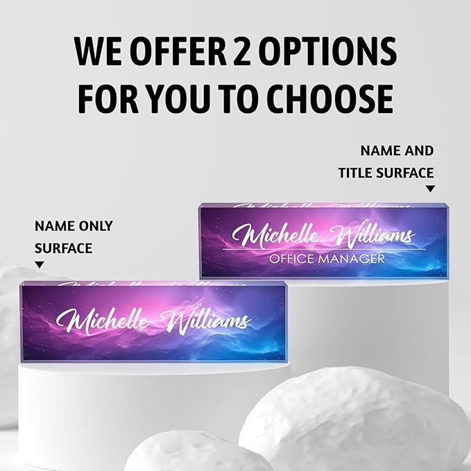 - 【Desk Name Plate Personalized】Our personalized name plate for desk offer a variety of design styles. You can choose the style you like, and then enter your name, professional title, blessing message, or motto. A customized nameplate for you was born, making it the best choice for both personal use and giving as a gift to others.