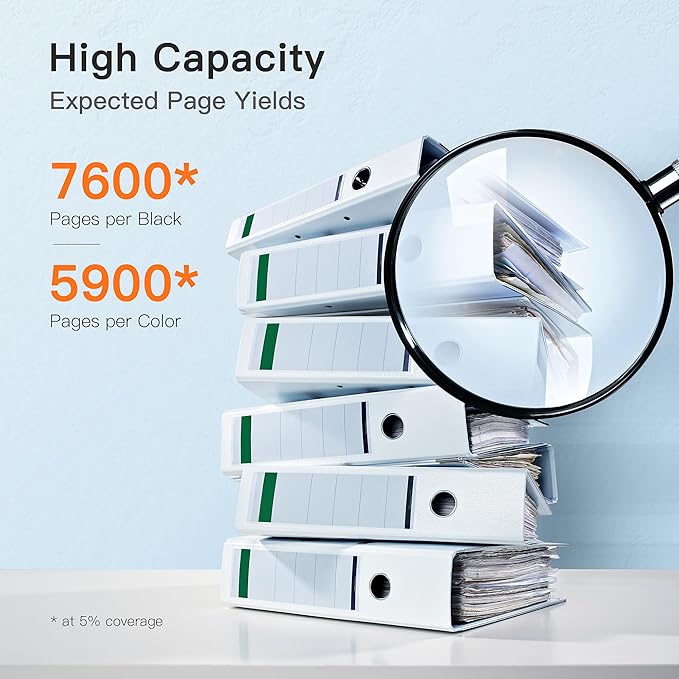 - Page yield: Black is 7,600 pages per toner cartridge and Color is 5,900 pages per toner cartridge at 5% coverage