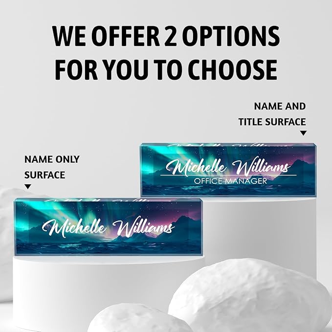 Personalized Name Plate for Desk, Custom Desk Name Plate, Acrylic Name Plate Office Desk Accessories, Personalized Office Gifts for Coworkers Teachers, Employee Appreciation Gifts (Blue Aurora)