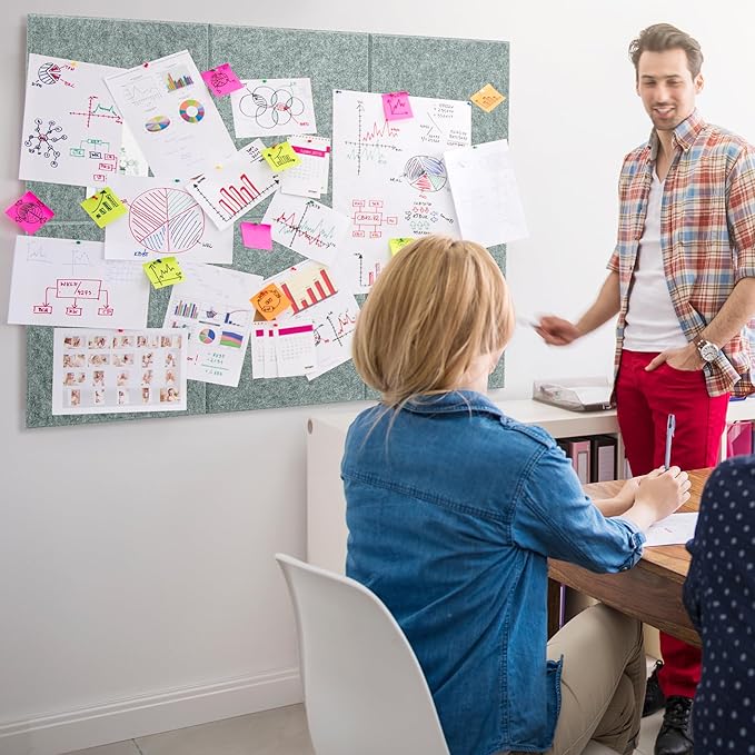 - Safe Removable Adhesive: 11.8 "x11.8" felt panels with 24 acrylic double-sided tapes, safe for your walls, suitable for working perfectly on flat, textureless, dust-free, dry surfaces and can be easily removed without damaging the wall paint, a perfect solution to pin your notes and messages in any office, home or commercial environment