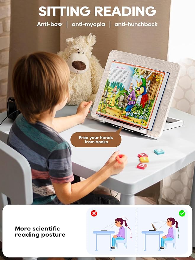 - 10 ADJUSTABLE READING ANGLES: With 10 adjustable angles, the book stand has been thoughtfully designed to provide the best comfort and support, and to reduce the stress caused by incorrect reading postures on the neck, shoulders and lower back.