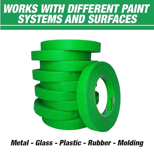 LAUCO DINOGREN High Performance Masking Tape for Car Paint, Heat & Water Resistant, Multi-Purpose Green (1.5 in (24 Rolls))