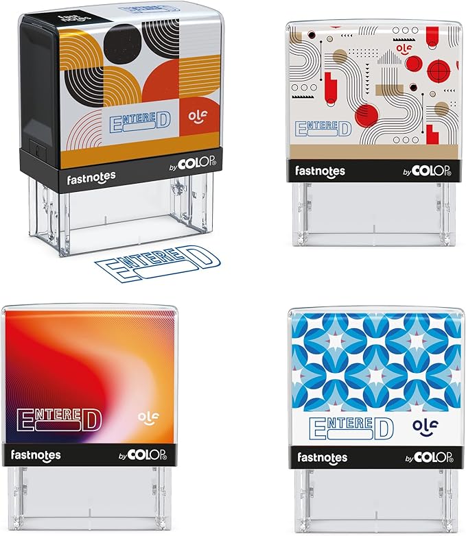 Fastnotes Entered Self-Inking Rubber Stamp by COLOP - Great for Office Documents, Notary, Warehouse, Accounting Paperwork, Business, and Legal Documentation - Blue Ink (Entered- Blue)