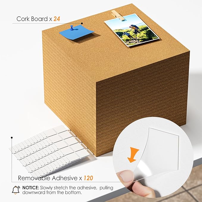 - EASY INSTALLATION: Each cork board comes with 5 removable double-sided self-adhesive stickers for effortless setup, allows you to attach the cork boards to flat wall without drilling holes, keeping your walls intact. Simply follow the provided precautions when disassembling, leaves no residue after removal