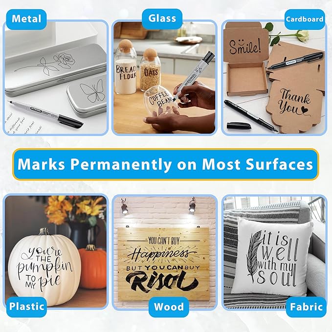 Permanent Markers 36 Variety Pack Bulk,Featuring Ultra-Fine,Chisel Tip,And Fine Tip Marker Set,Writing And Poster Black Markers,Works on Plastic,Wood,Stone,Metal and Glass for Doodling, Marking