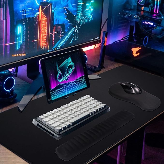 - SOFT, COMFORTABLE & DURABLE: The keyboard wrist rest and mouse pad set are made of ultra-soft 93D high-density memory foam, offering soft support and slow rebound for long-lasting comfort.
