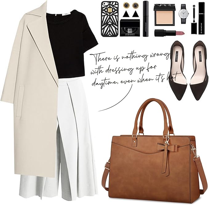 • Elegant Laptop Tote: RAINSMORE Work bags for women come with a detachable premium bow, adds an extra feminine touch to this minimalist laptop tote bag for women. To tie or not to tie, both which personalize your styles and retain a sense of chic. Perfect gift choices for anniversary, birthday, Mother's Day, Valentine's Day and Christmas. Tips: this laptop bag for women has been patented on its appearance