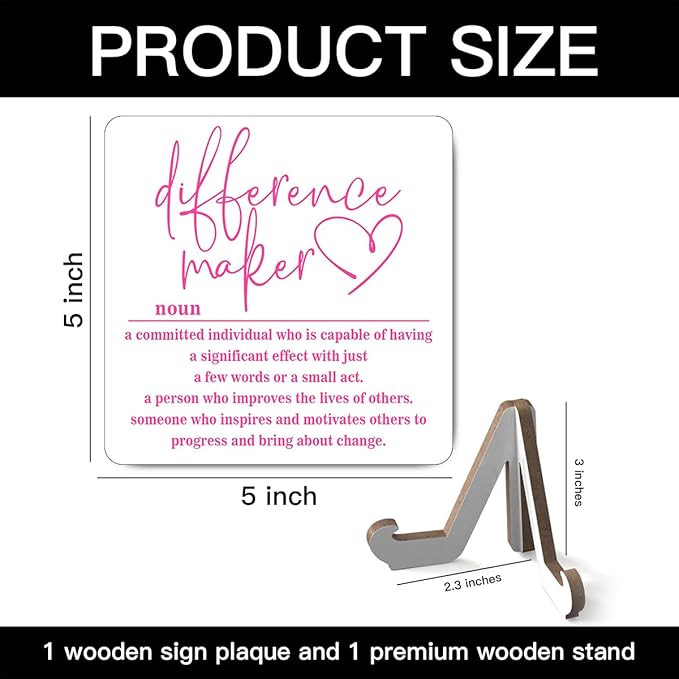 Wooden Table Sign Office Decor Difference Maker Definition Desk Decor Wood Plaque With Stand Thank You Gifts for Boss Women Best Mom Coworker Teacher Office Desk Accessories(White)-C01