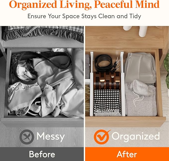 - Expandable Design: Our drawer dividers measure 0.8 inches wide, 6 inches high, and are adjustable from 13.5 inches to 22 inches, fitting most drawers and cabinets easily; The ideal solution for keeping items organized and drawers tidy