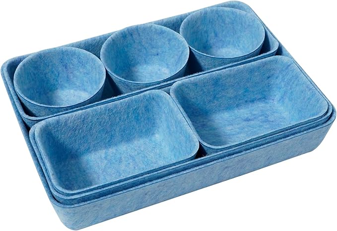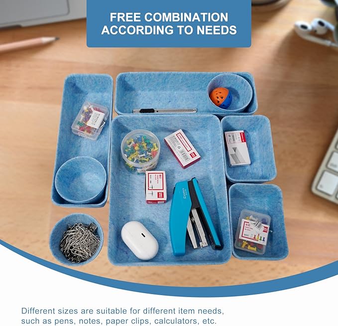 Felt Desk Drawer Organizer Tray,8 Pack Office Desk Drawer Dividers,Felt Drawer Small Round Storage Box For Saving Space,Makeup Drawer Organizer Bins.(Blue)