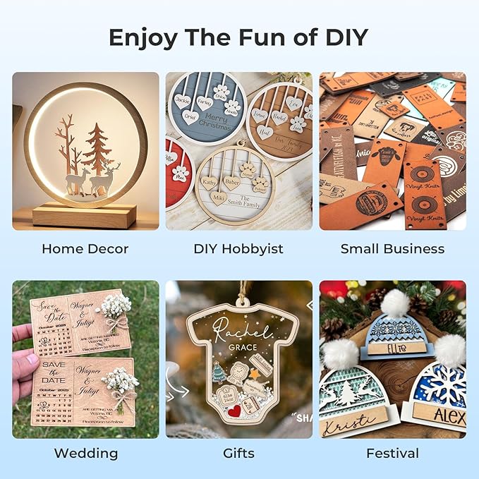 - 【Powerful 10W Laser】This 10W laser engraver machine delivers fast, precise engraving and cutting on materials like wood, acrylic, and leather at speeds of up to 10,000mm/min, ideal for hobbyists and small businesses seeking high efficiency.