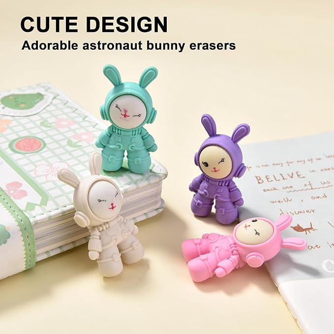 - Cute Space Theme: 20 unique erasers featuring adorable astronaut bunny designs that add a fun outer space theme to any stationery collection