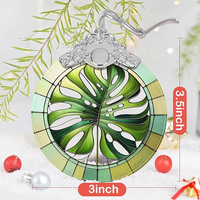 Monstera Leaf Stained Glass Ornament - Christmas Tree Decorations, Holiday Presents, Gift Exchange Ideas