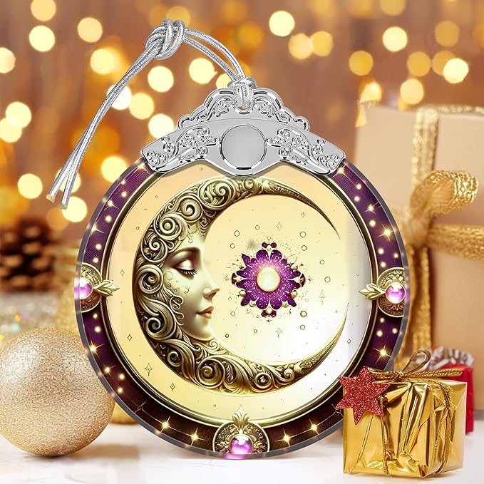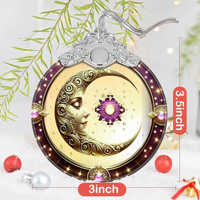 Sun and Moon Stained Glass Ornament, Xmas Ornaments, Sun and Moon Christmas Decor, Ornaments for Christmas Tree, Holiday Presents, Gift Exchange Ideas