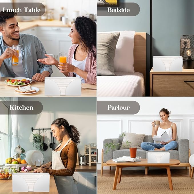 - 【Practical Paper Towel Holder】 This bathroom paper towel holder is not only practical but also stylish. Its simple design in white acrylic matches any decor, whether you place it in your bathroom, kitchen, or office. This commercial paper towel dispenser can be placed on tables, shelves, desks, and other smooth surfaces, keeping napkins and fingertip towels clean, neat, and organized on your kitchen counter, banquet table, or bathroom vanity.