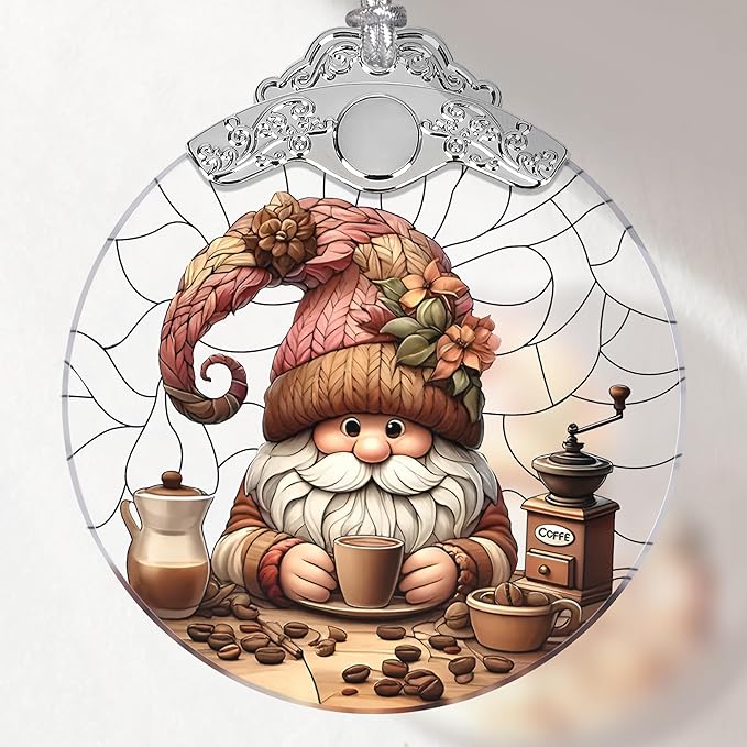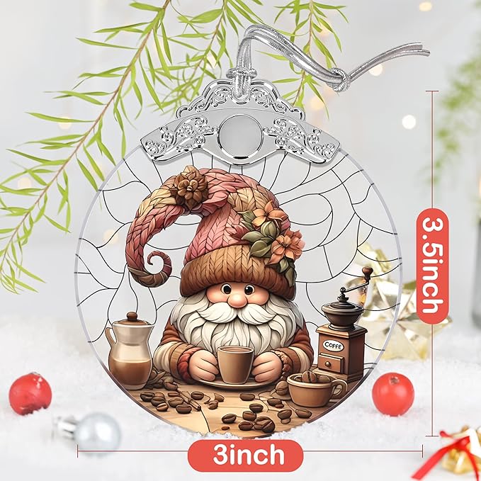 Gnome Stained Glass Ornament, Christmas Tree Decorations, Holiday Presents, Gift Exchange Ideas
