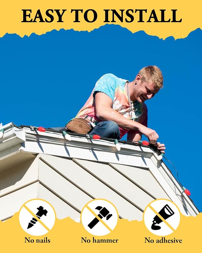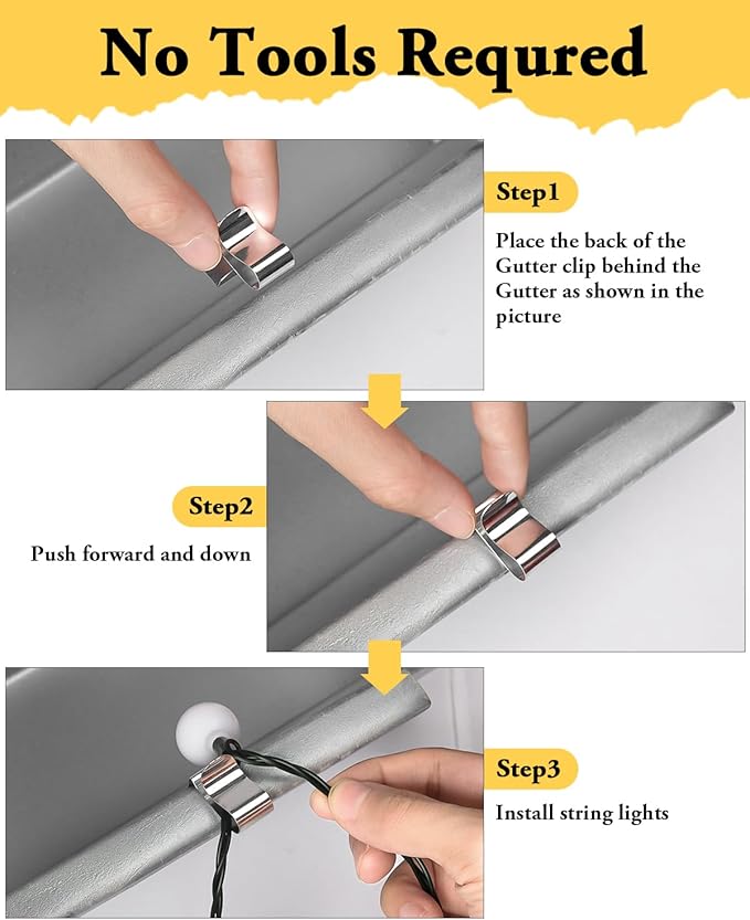 - Easy Installation: The light clips can be easily installed without glue, nails or other tools. Simply attach them to gutters and eaves to quickly secure the string lights, saving a lot of installation time.
