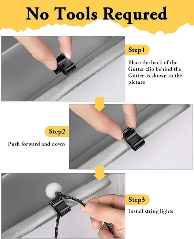 - Easy Installation: The light clips can be easily installed without glue, nails or other tools. Simply attach them to gutters and eaves to quickly secure the string lights, saving a lot of installation time.