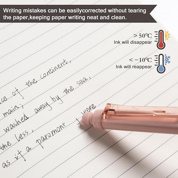 - Erasable Design: Ink disappears by rubbing with the rubberized end of the pen, leaving no residue. Writing mistakes can be easily corrected without tearing the paper, keeping paper writing neat and clean