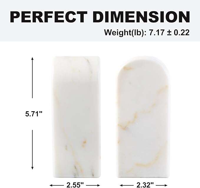 - Enhanced Stability: Each set of Koville marble bookends includes four anti-slip pads that ensure a secure grip on any surface, Weighted 7lbs, preventing your books from toppling over. Also a thoughtful gift that adds both beauty and practicality to any space.