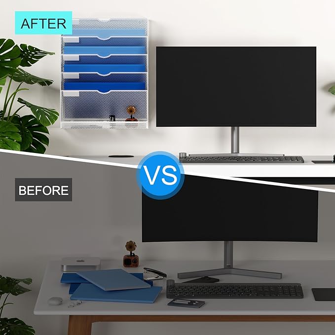 - 【Multiple Uses】This office organizer requires no assembly and can be used directly on your desk or mounted on the wall. Make full use of vertical space and keep your desk clear. Rounded corners and smooth edges are designed to protect people from scratches while in use