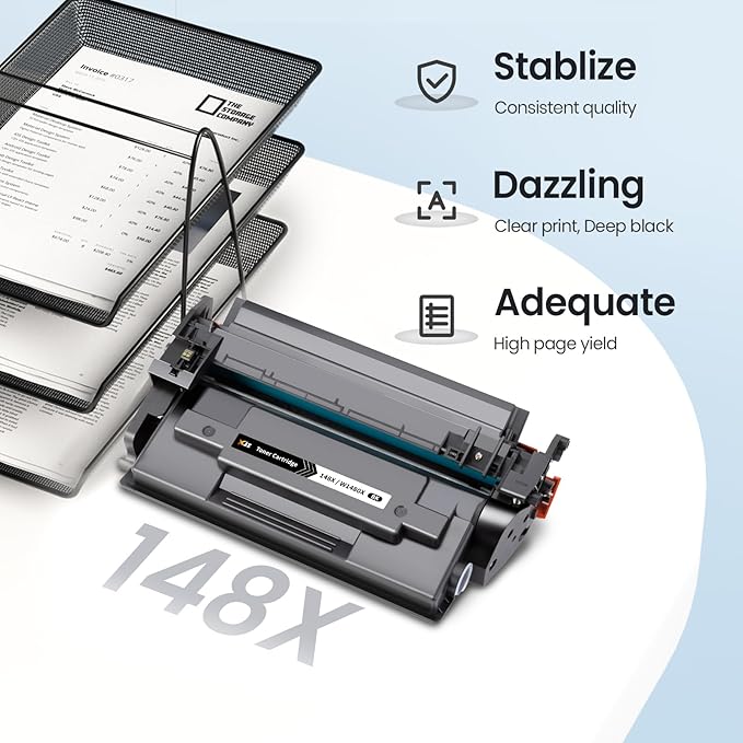 - High Page Yield: Up to 9,500 pages per 148X black cartridge at 5% coverage on letter/a4