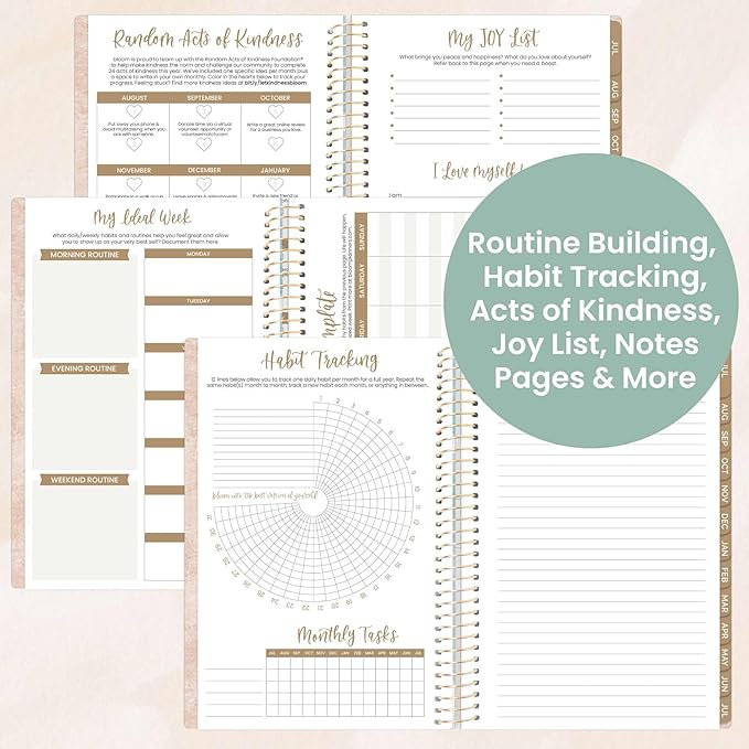 - PREMIUM, HIGH-QUALITY MATERIALS: Designed for durability and functionality, this agenda includes soft laminated covers, easy-to-navigate tabs, ultra-thick 100gsm paper that resists ink bleed, a smooth metal spiral binding that lays flat, plus storage pockets, a FREE sticker sheet, and a bookmark.