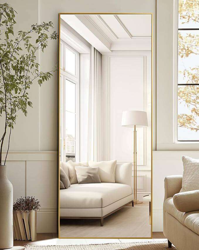 Antok Full Length Mirror, 59"x18" Floor Mirror, Floor Standing Freestanding Full Body Mirror with Stand for Bedroom, Hanging Mounted for Living Room Cloakroom, Gold