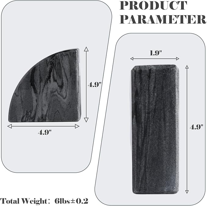 - NATURAL MATERIAL: The heavy duty bookend weight 7.5LB and are equipped with 4 non-slip pads to effectively minimize scratches on your desktop. Make your reading time more relaxing and ensure the safety of you and your family with this marble beookend.