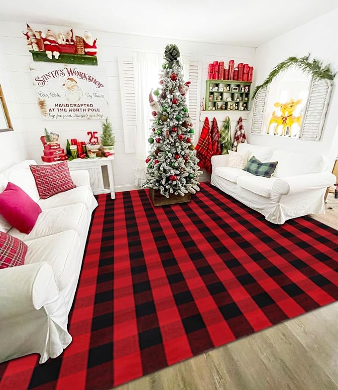 - Cozy Farmhouse Plaid Style - Classic red and black buffalo check adds timeless farmhouse warmth and Christmas charm to your living room, bedroom, or family space.