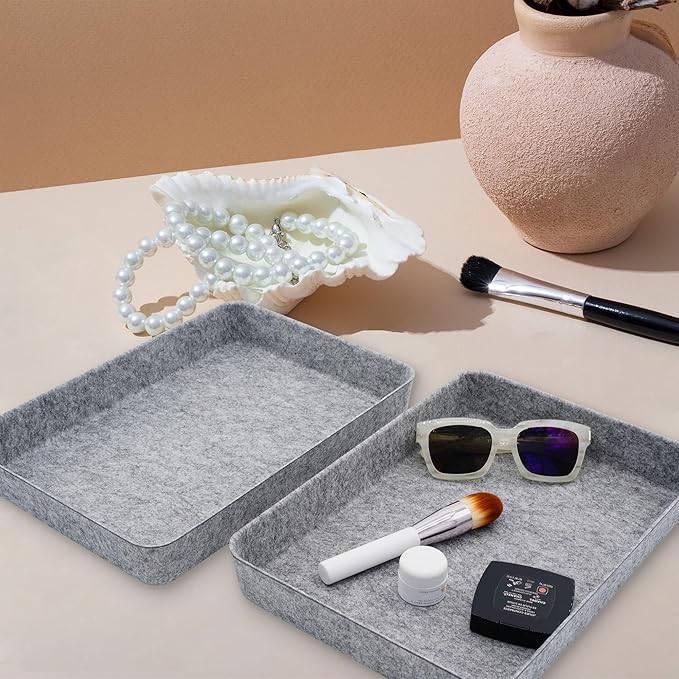 - 【Package content】: 2 piece set Desk drawer organizer trays for papers documental files , classic grey felt color ,more economic and affordable for home office dorm storage and organization