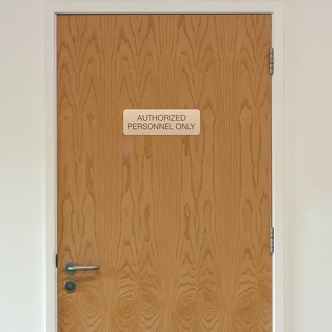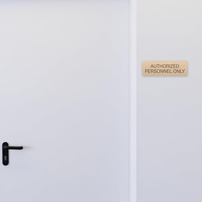 Maple Faux Wood Authorized Personnel Only Sign / 3" x 9" Easy Adhesive Door Wall Mount/Restaurant Small Business Staff Only Sign/Made in The USA