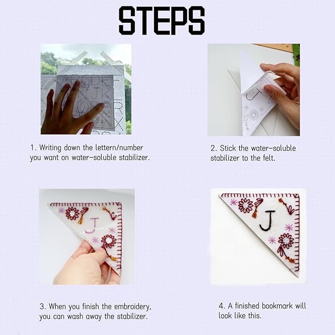 Bookmark Making Kit, Personalized Embroidered Corner Mark for Beginner, 4 Pack, DIY Initial Felt Bookmark Corner, Gift for Book Lover