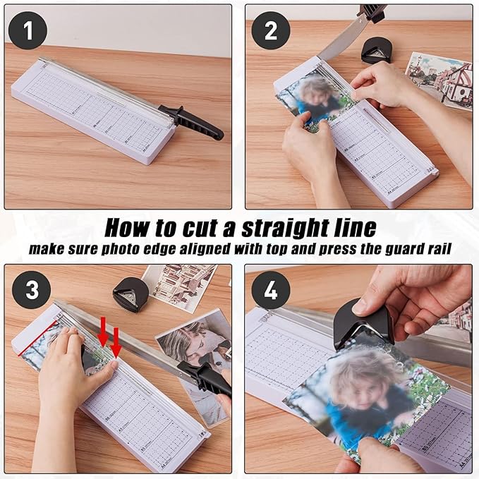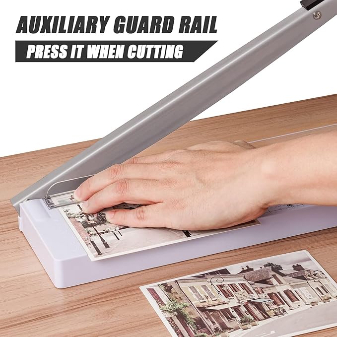 - HIGH PERFORMANCE GUILLOTINE TRIMMER:thick and sharp stainless steel blades will stay sharper longer; Accurate measuring scale make cutting work more quick and precise sturdy plastic base cutting paper without difficulty