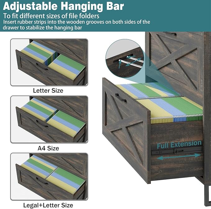 - 🗂️【5 Options for Hanging Folders】Large drawer for storing A4/letter/Legal size hanging folders, Flexible Hanging Rods Accommodates Multiple Sizes File: Legal+A4 Size/ Legal + Letter Size/ Letter+ A4 Size/ A4+A4 Size/ Letter + Letter Size.